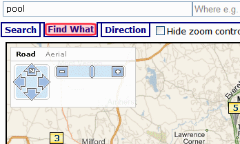 The site visitor can use the Find What tab to find only locations that include a search term. For example, if a map flags hotels, the visitor can click the Find What tab then insert pool in the text box above to view only hotels with a pool.
