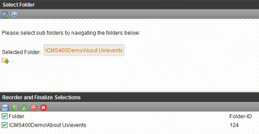 The Select Folder screen lets you assign new folders to the menu, reorder the folders, and delete folders from the menu association. These tasks are described below.