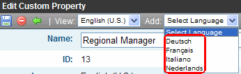 Note: The Add dropdown shows enabled languages for which this custom property does not already exist.