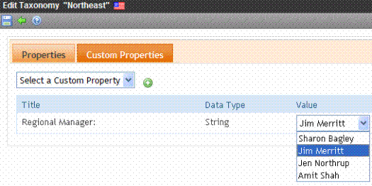 Note: Only members of the Administrator User Group can work with custom taxonomy properties.